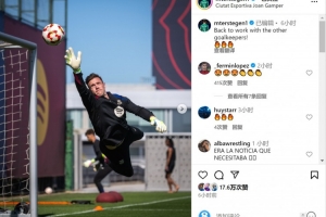 特尔施特根去年9月重伤缺席至今,巴萨官方确认他已经恢复部分合练,这位32岁的门将在社交媒体上晒出训练照片,配文:“回归训练场,与其他门将一起训练!”